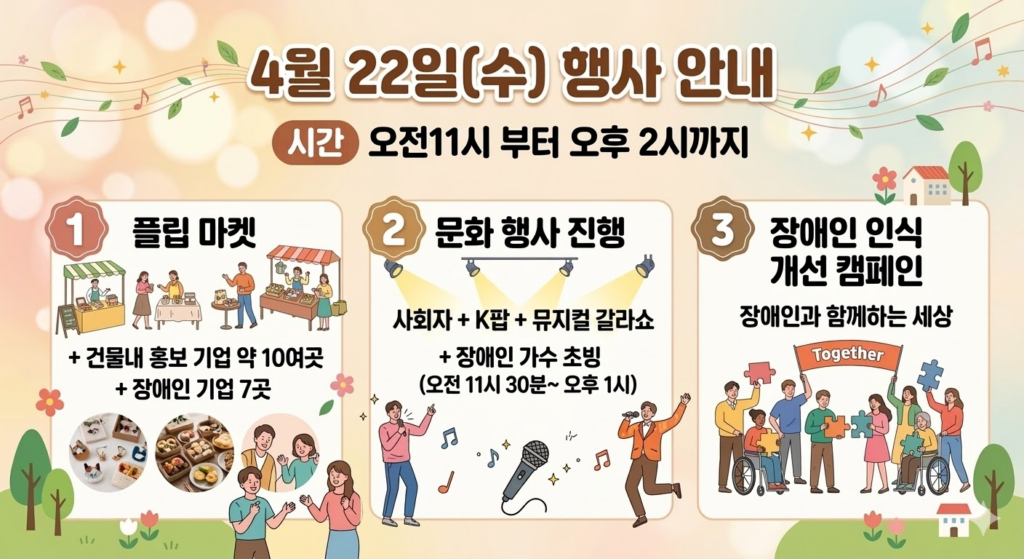 주요내용: 뮤지컬 공연, 장애인 생산품 마켓, 인식 개선 캠페인 등